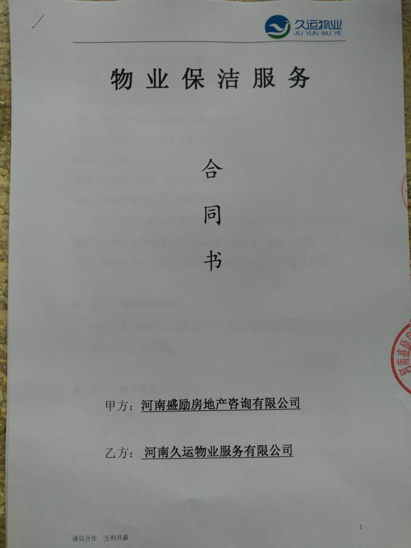 河南久運(yùn)物業(yè)全面負(fù)責(zé)河南盛勵地產(chǎn)公司總部辦公樓衛(wèi)生保潔工作,辦公樓共三層,服務(wù)面積近一萬平方。